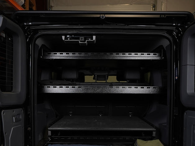 Need more cargo management? The Grenadier Upper Deck adds a whole new level of storage. With a quick spin of 2 levers the Upper Deck folds down and allows about 7 inches of storage space between the roof and the Upper Deck tray. This system comes with (2) adjustable dividers and a 1/8 inch thick EVA foam peel and stick mat. This keeps all your gear securely in place. Plenty of tie down location for bungee’s or straps.