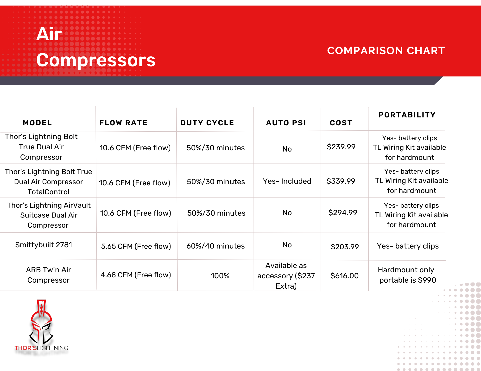 Thor’s Lightning AirVault2 Compressor Series Specifications: